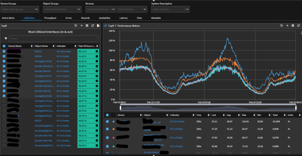 - Visualiserar de mest belastade gränssnitten i ett top-N-format baserat på historisk trafikdata.